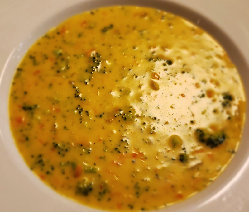 Based on “Copycat Panera Broccoli Cheddar Soup“, when we made this, the sous-chef did a great job of cooking the ingredients while the kitchen porters shredded the cheese and carrots. We served it with gruyère grilled cheese on sourdough bread. Despite complaints from the kitchen porters about shredding the cheese and carrots, everyone loved the results. The original recipe said 8 servings, but it didn’t get that far.